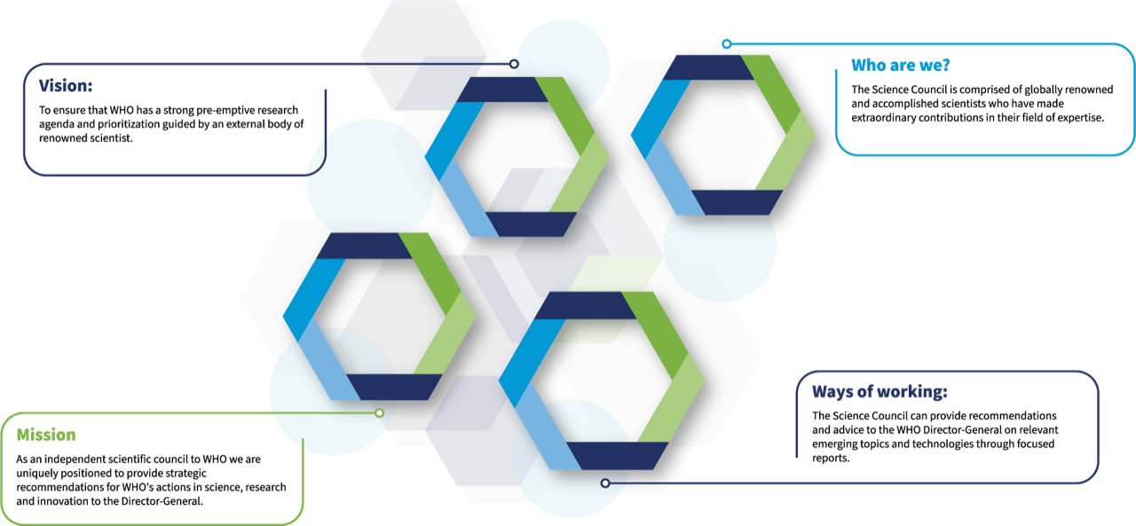 The Science Council was established in April 2021 by the Director-General of the World Health Organization to provide guidance on the science and research strategy of the organization.